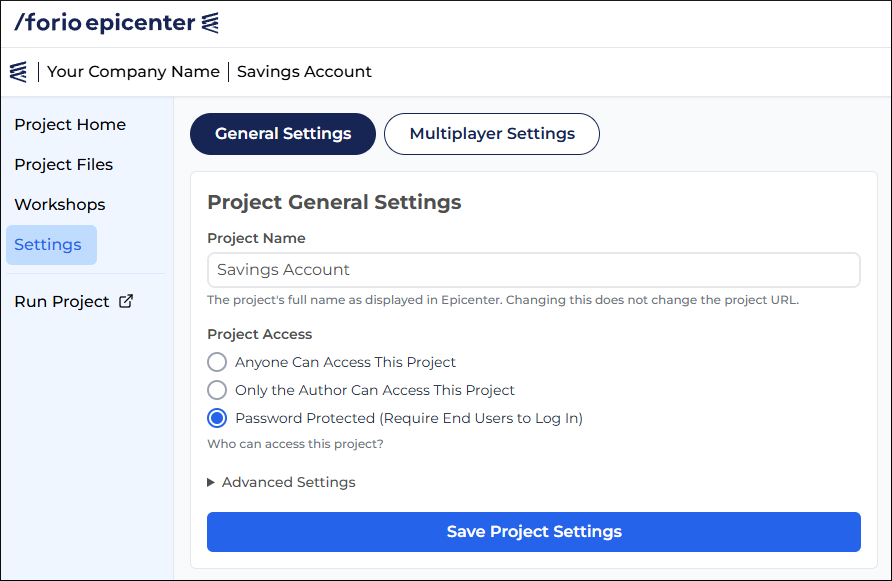 - Click the project URL, or click Run Project on the left. The application's login screen opens in a new tab.
